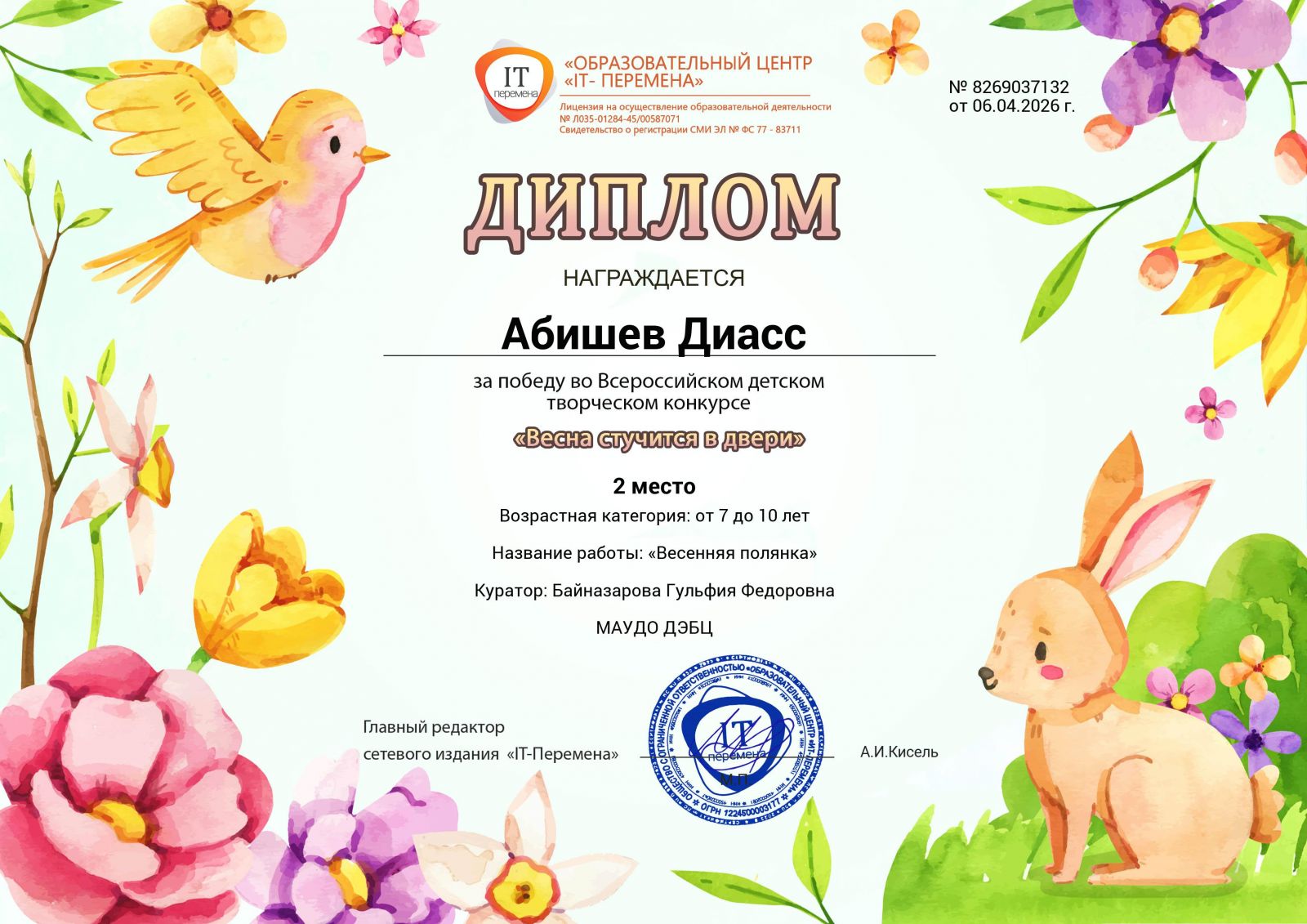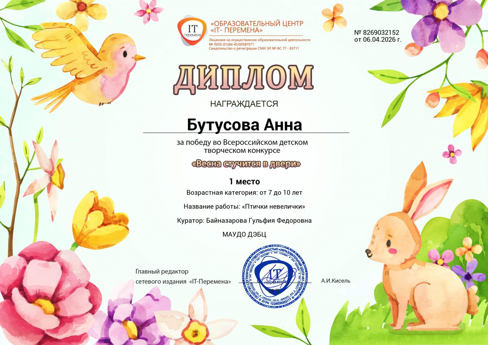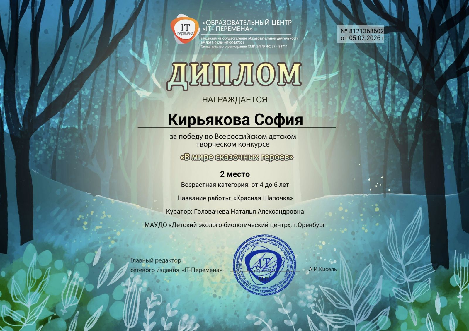 - 2 степени - Ермолаева Анастасия Александровна;