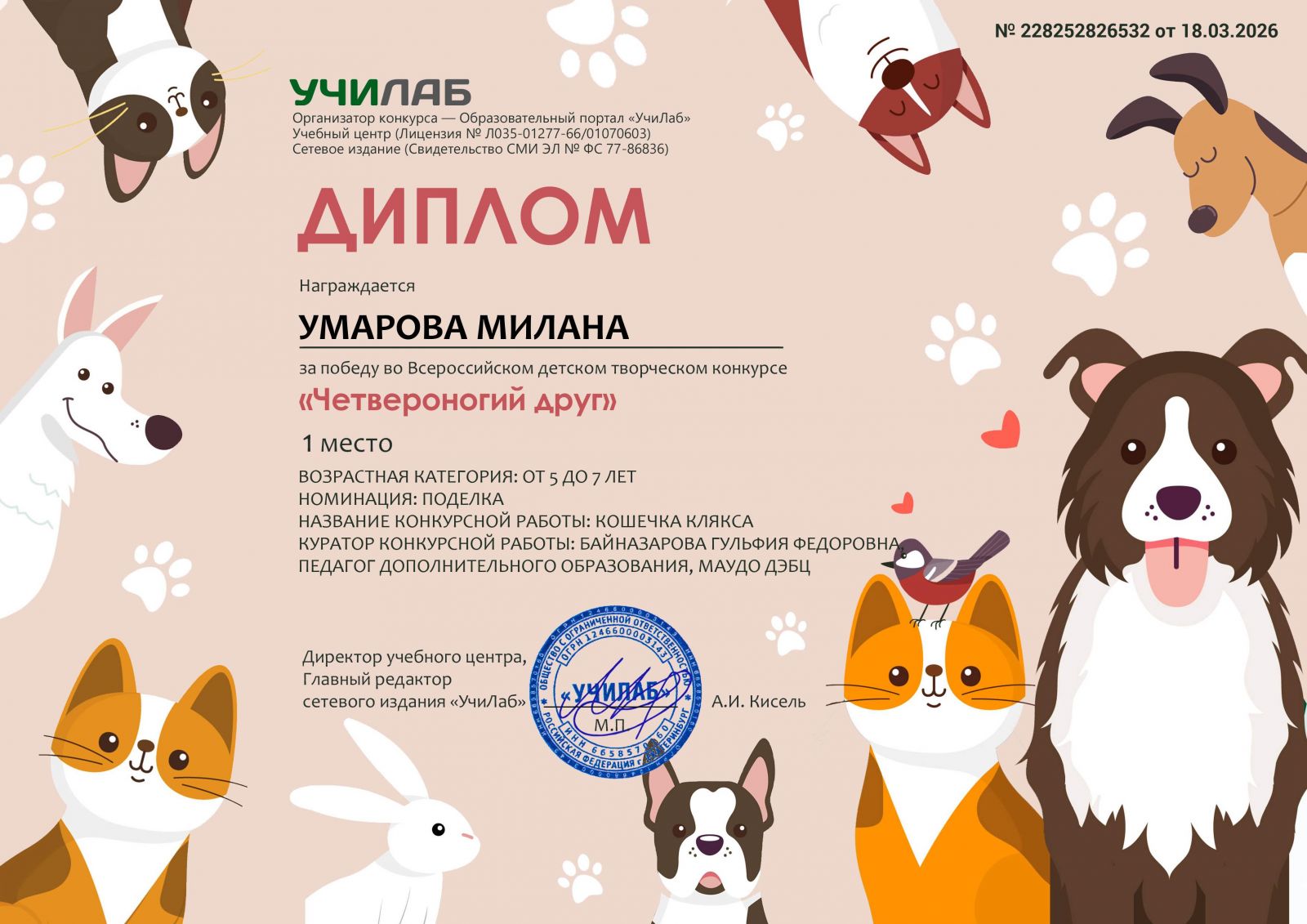 - 3 степени – Головачёва Наталья Александровна;