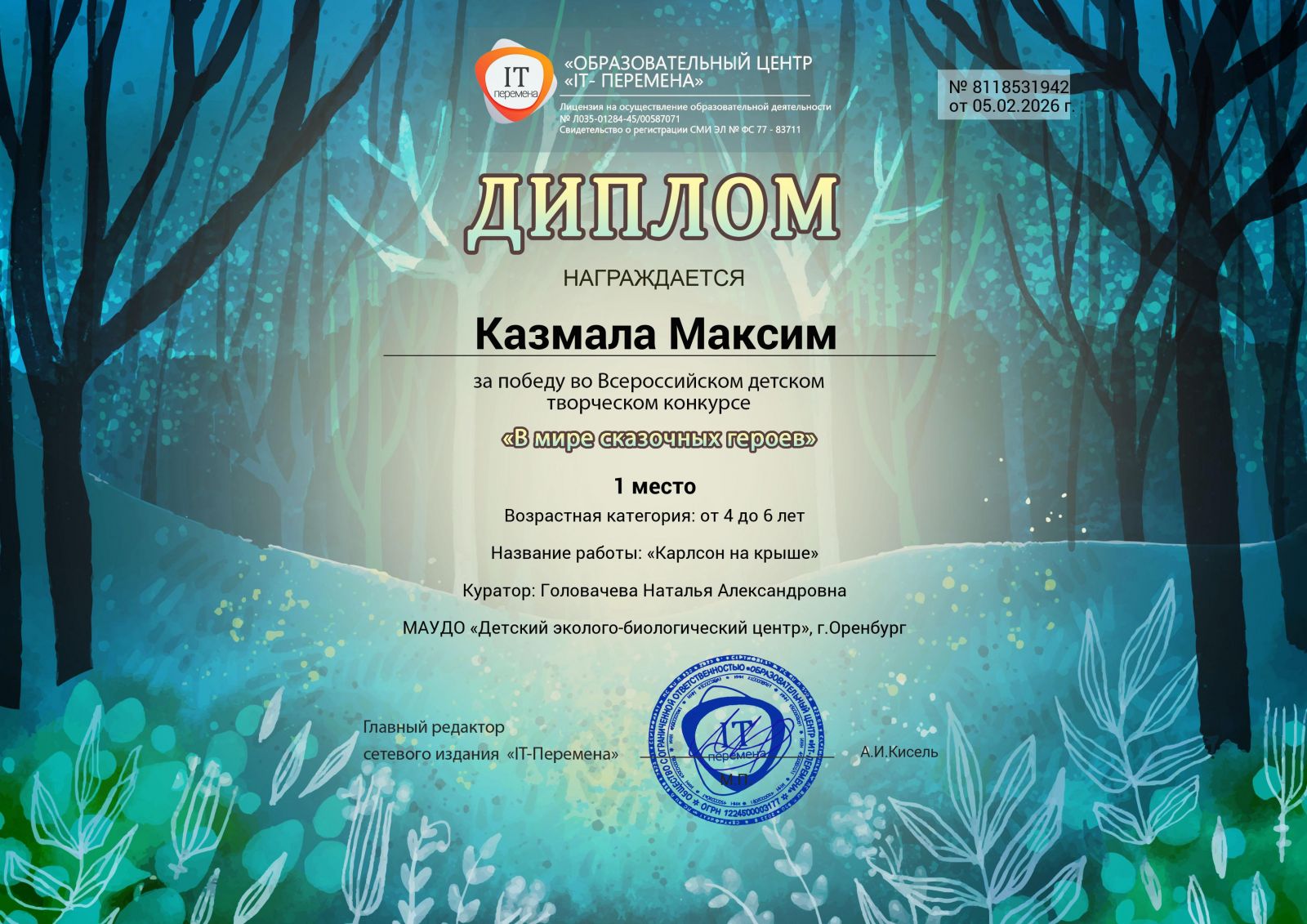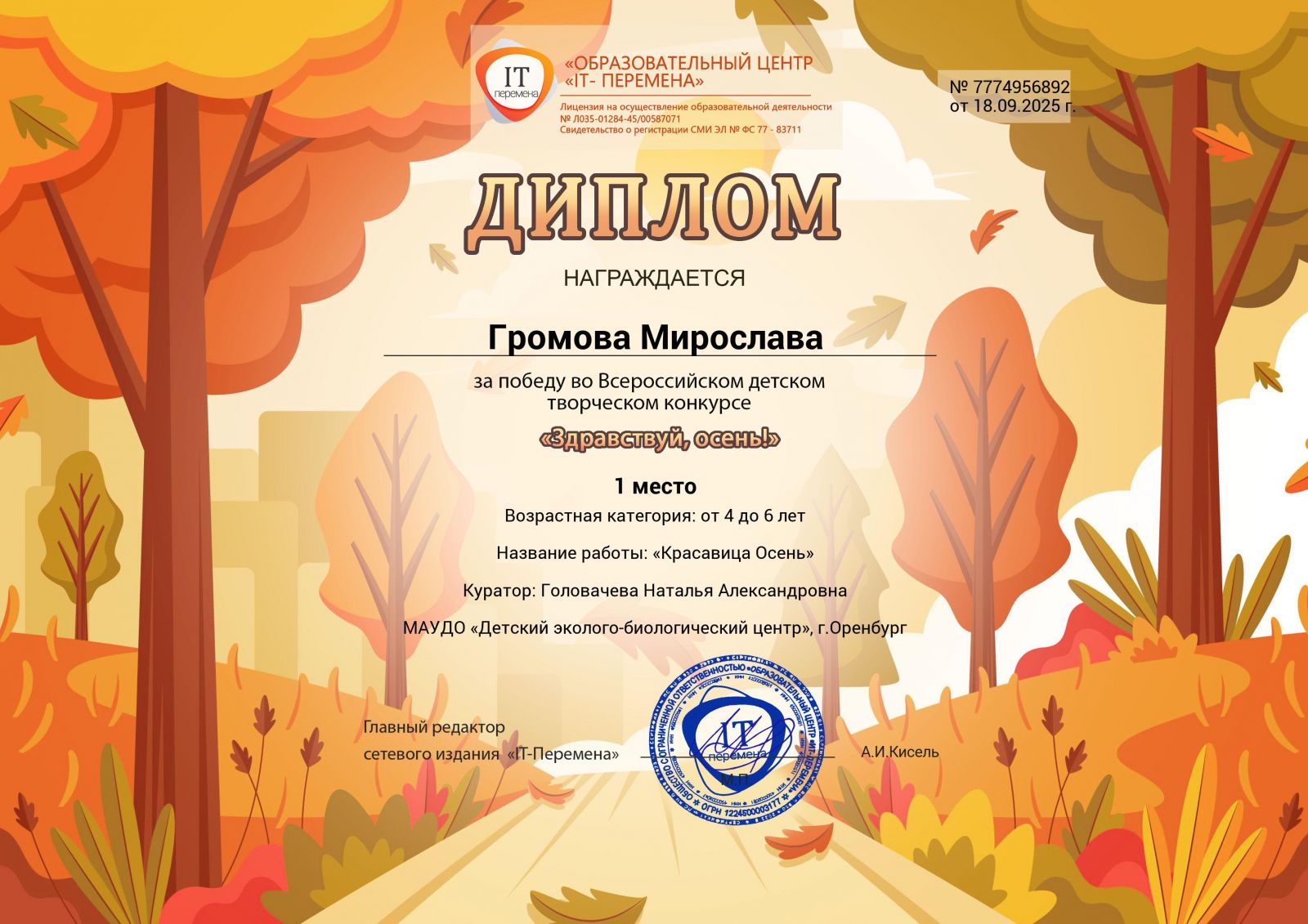 22 ноября 2024 года состоялось награждение победителей городского конкурса профессионального мастерства организаторов деятельности в каникулярное время «Платформа новых возможностей-2024». В их числе и наш педагог-организатор Каплуновская Мария Сергеевна. Она достойно представила Детский эколого-биологический центр. Администрация и коллектив центра поздравляет Марию Сергеевну!