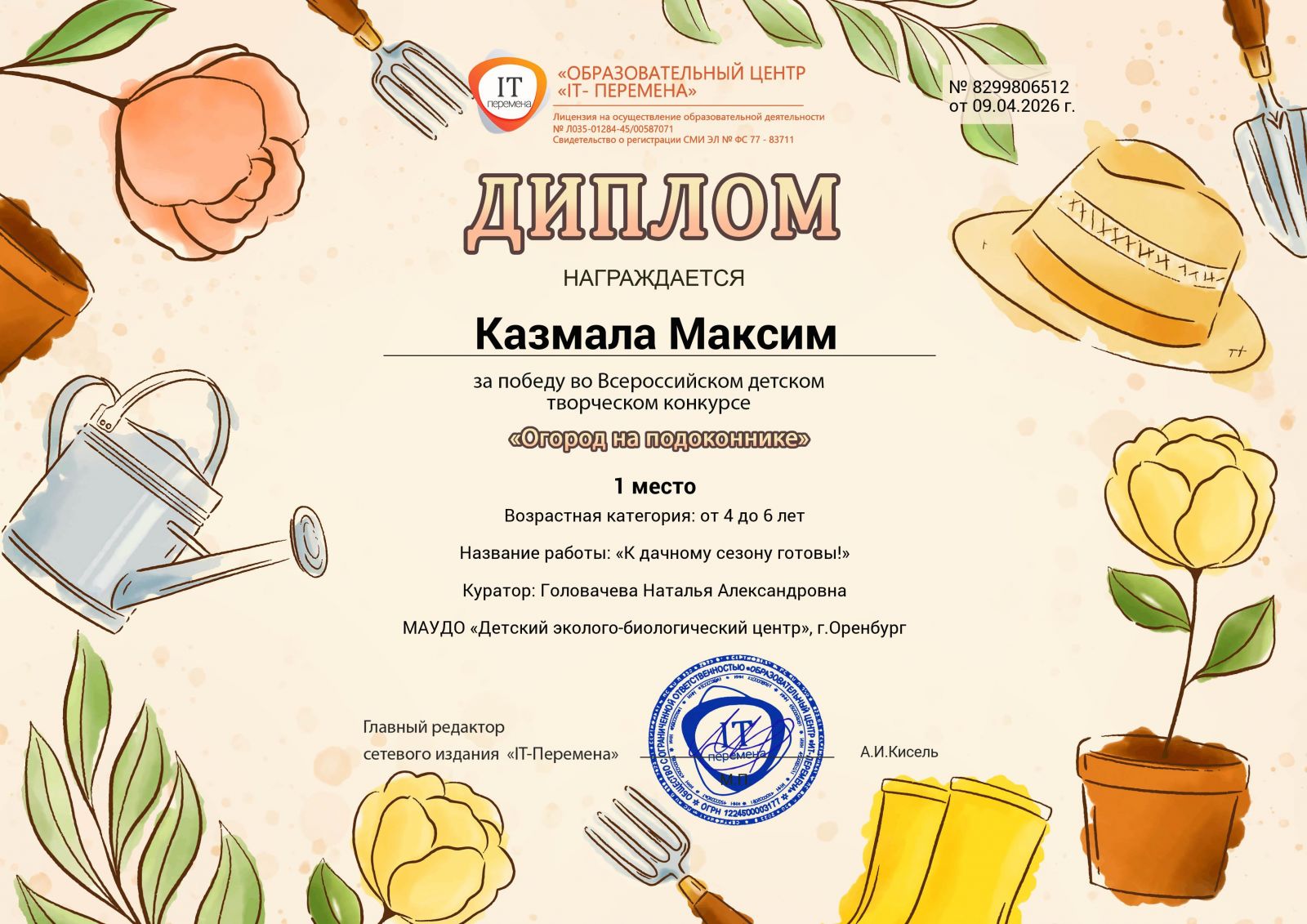 - диплом участника - Каплуновская Мария Сергеевна;
