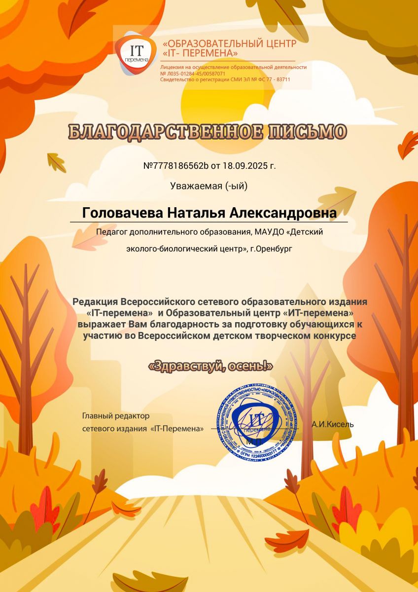 17 сентября 2025 года, с 12.00 до 15.00, в парке им. В.А. Перовского МАУДО «Детский эколого-биологический центр», совместно с управлением образования и МАУ «Молодой Оренбург» администрации г. Оренбурга, проводит городской экологический фестиваль «ЭкоОренбург» (награждение по итогам городского экологического образовательного проекта «Чистый город - чистая страна!» и городской экологической акции «Мы любим наш город»). Мероприятия проводились в период с января по сентябрь 2025 года. В данном проекте приняли участие 71 образовательная организация г. Оренбурга.