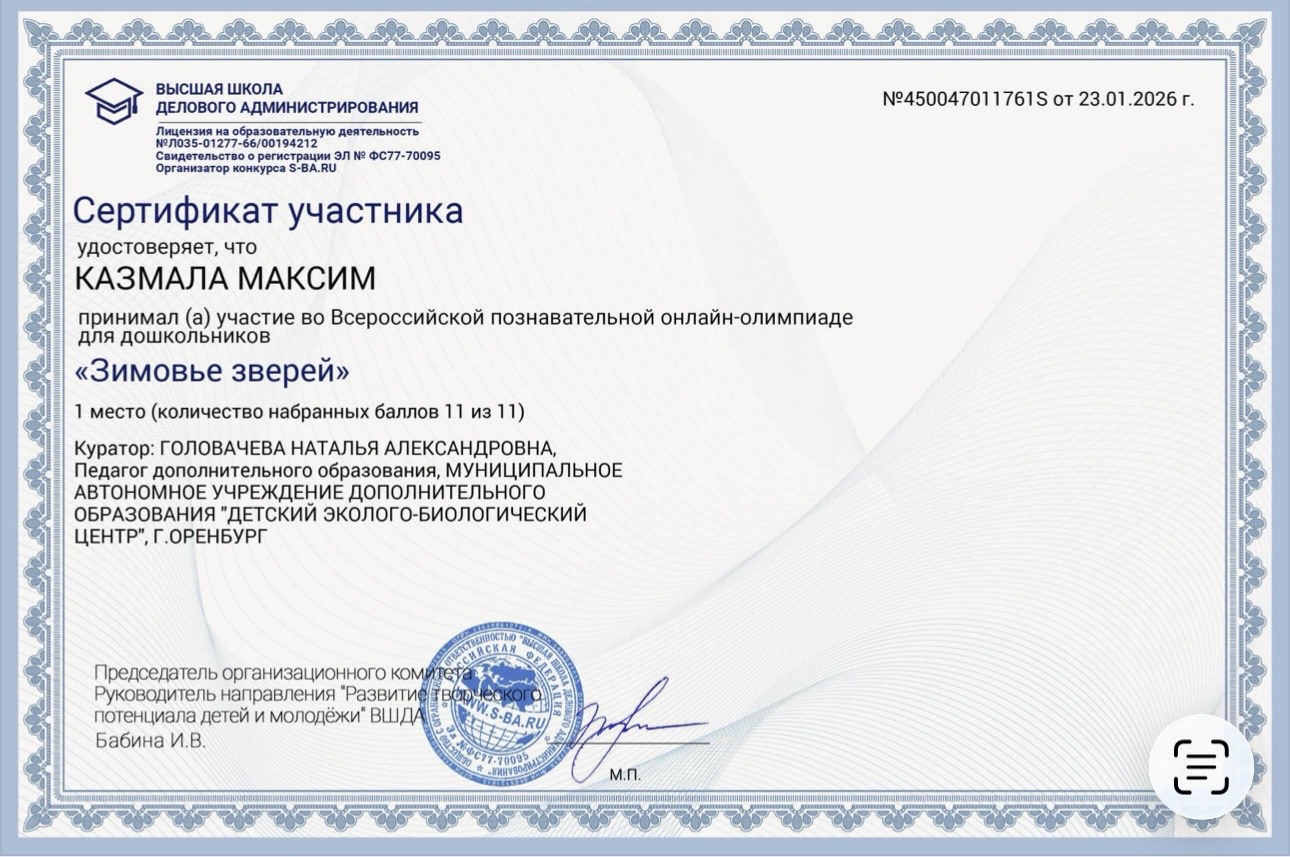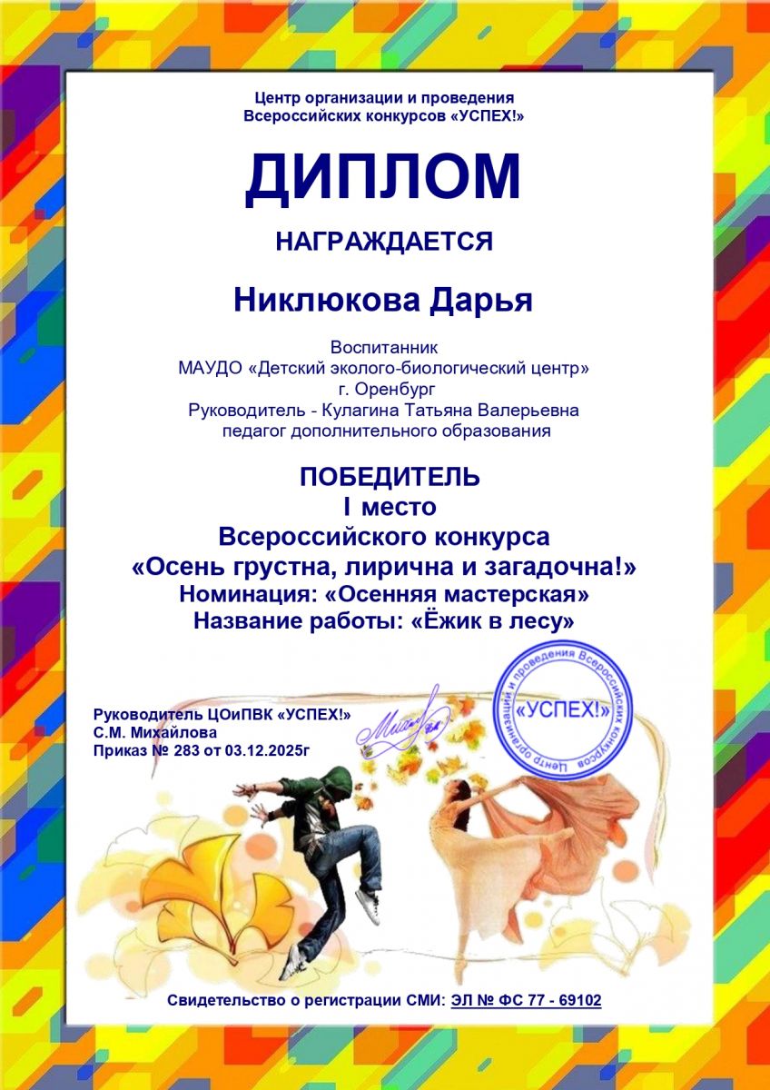 22 ноября 2024 года состоялось награждение победителей городского конкурса профессионального мастерства организаторов деятельности в каникулярное время «Платформа новых возможностей-2024». В их числе и наш педагог-организатор Каплуновская Мария Сергеевна. Она достойно представила Детский эколого-биологический центр. Администрация и коллектив центра поздравляет Марию Сергеевну!