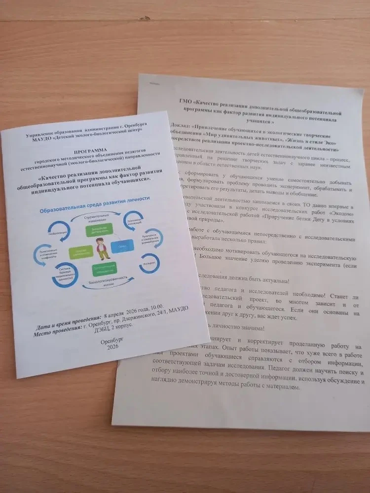 28 января 2026 года состоялось заседание городского методического объединения педагогов естественнонаучной направленности Детского эколого-биологического центра совместно с отделом «Содружество» ЦДТ г. Оренбурга. Темой методического объединения стало развитие профессиональных компетенций в рамках проектирования системы непрерывного образования педагога дополнительного образования: значимость, возможности, алгоритмы успеха в учреждении дополнительного образования посредством естественнонаучной деятельности.