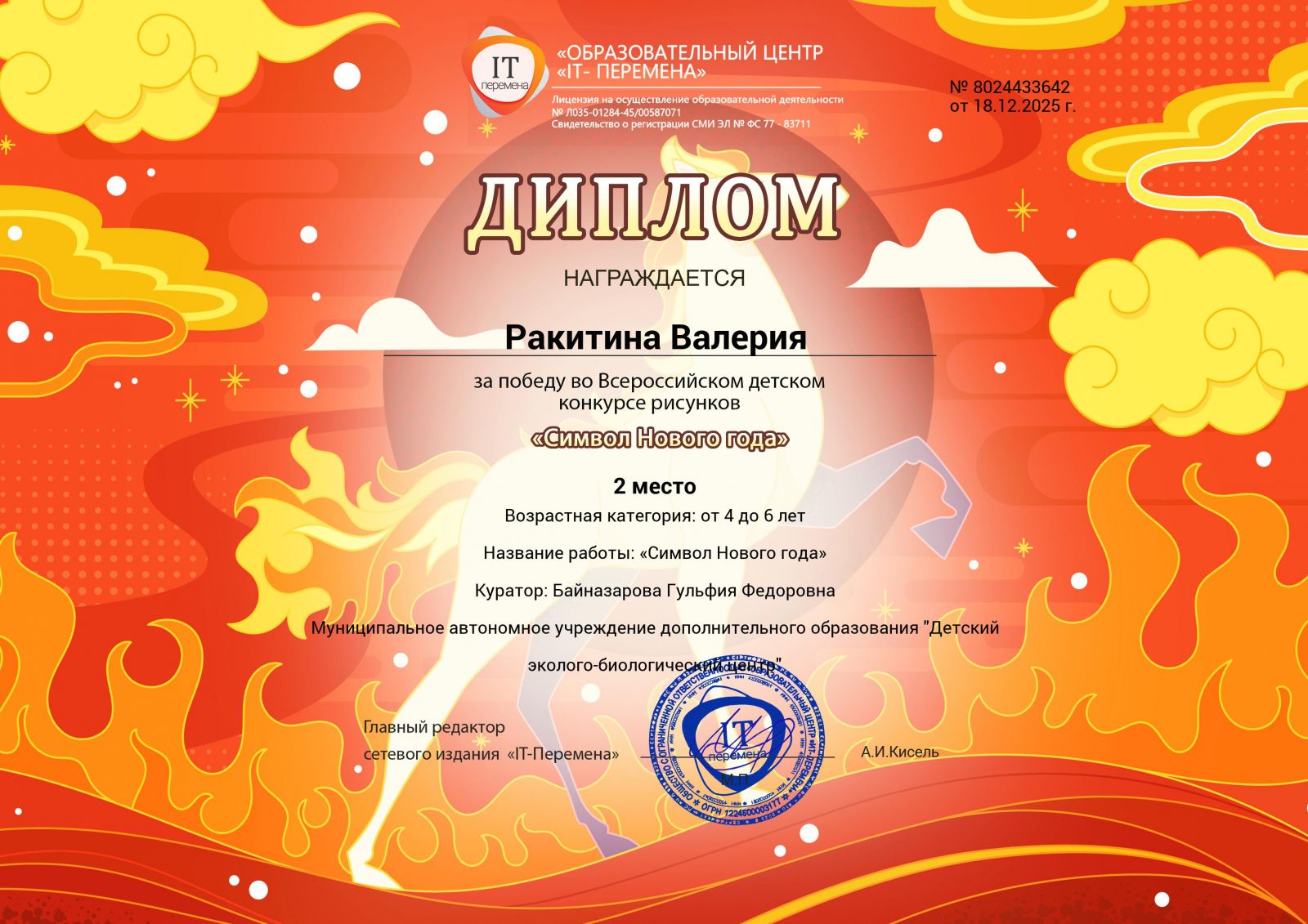- 2 степени - Ермолаева Анастасия Александровна;